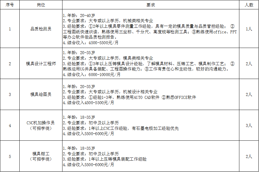 重慶盛源模具制造有限公司2022年2月招聘需求,誠邀您加入我們!